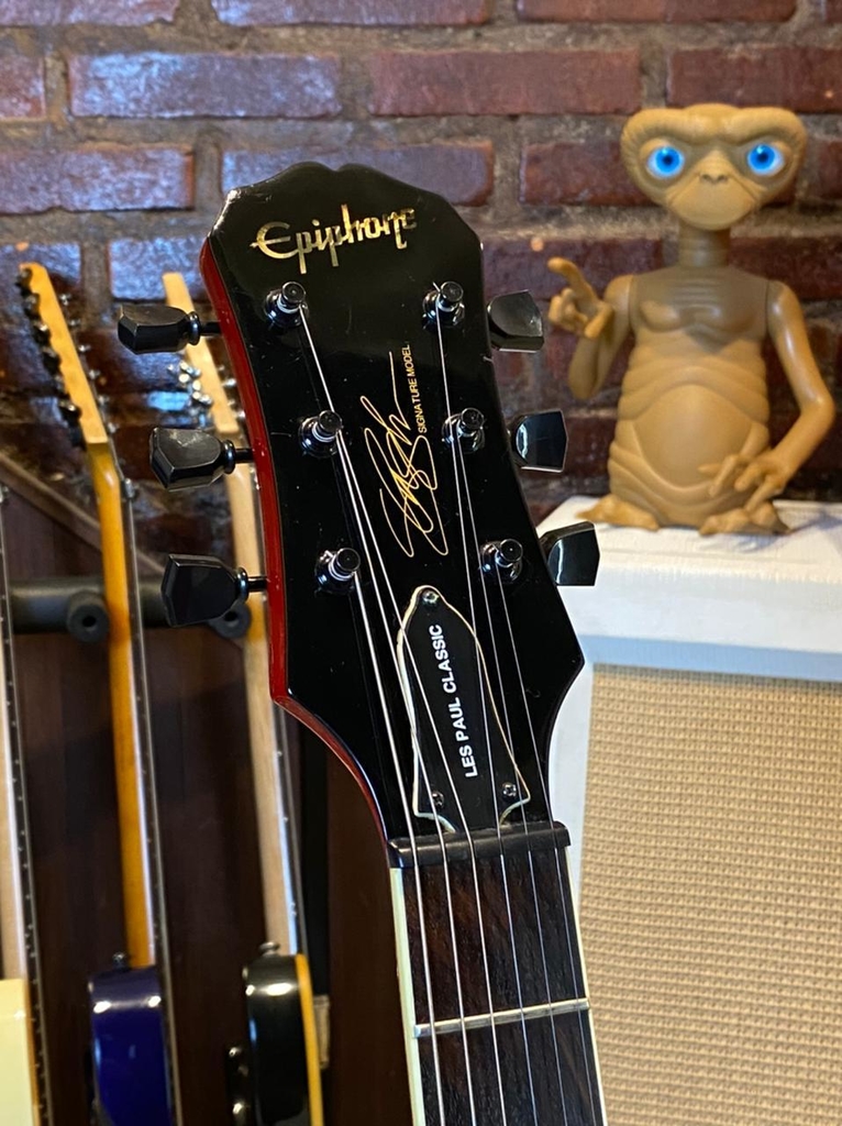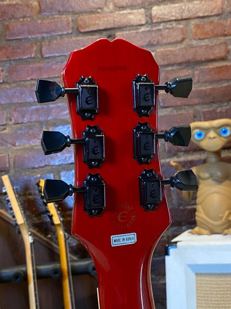Essa é com certeza uma das guitarras mais raras e lindas já lançadas pela Epiphone, fabricadas entre 1997 e 2000 em homenagem a banda formada por Slash em 93 (Slash’s Snakepit), essa foi a primeira Epiphone signature Slash lançada pela marca, foi baseada na sua Gibson Snakepit de 1996 (a Gibson Snakepit é avaliada hoje em mais de U$70 mil dólares). A Epiphone Les Paul Classic Slash Snakepit Signature tem uma tiragem limitada em apenas 1500 peças, essas guitarras são extremamente difíceis de se encontrar hoje em dia e são bem valorizadas no mercado com valores entre U$900 e U$1400 no exterior. Esse exemplar ‘’Limited Edition’’ foi fabricado na Korea no ano de 1999 e está em perfeito estado, 100% original, todos os selos, peças, elétrica, tudo perfeito, o visual é de tirar o fôlego nessa cor Translucent Red com o tampo flamed lindíssimo e o decal logo Snakepit no top, junto de toda a ferragem preta e da assinatura do Slash estampada no headstock, essa guitarra é maravilhosa, braço perfil 60’, sonoridade encorpada e tocabilidade incrível, difícil encontrar outra dessa nesse estado, regulada, revisada e pronta pra plugar e tocar, acompanha tags e Hard Case.