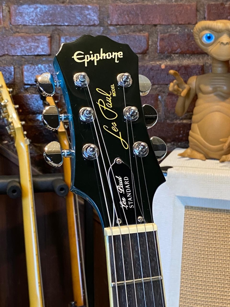 Guitarra nova, nunca foi usada! A Epiphone Les Paul Standard lhe proporciona um acabamento e timbre rico por um preço acessível. Essa Les Paul é da série Limited Edition Custom Shop na incrível cor Pelham Blue, que além de linda tem tudo o que você precisa em uma Les Paul, corpo em Mogno sólido, tampo em Maple, captadores Humbucker 57 Classic, tarraxas Grover e ponte Tune-O-Matic / Stopbar Tailpiece, esse é o combo ideal para obter um timbre encorpado e um sustain monstruoso. Esse exemplar é do ano 2008, fabricado na China, está absolutamente nova, em perfeito estado de conservação, sem marcas ou batidas, parece que acabou de sair da loja, está 100% original, acompanha todos os tags, certificado e bag original Epiphone, o kit completo, revisada e regulada, pronta pra plugar e tocar. Se você procura um instrumento super equilibrado, com visual, sonoridade e tocabilidade por um preço mais acessível, essa é a sua guitarra!