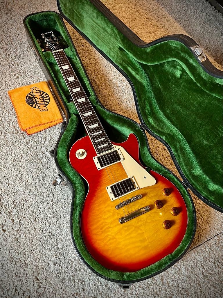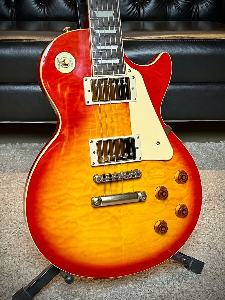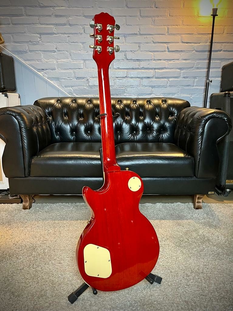 A Epiphone Les Paul Standard lhe proporciona um acabamento e timbre rico por um preço acessível. Essa Les Paul é da série Plus Top, com ferragens douradas e recorte na parte traseira do corpo (Comfort Body), tem o top em Quilted Maple e na clássica cor Cherry Sunburst, que além de linda tem tudo o que você precisa em uma Les Paul, com corpo em Mogno sólido, tampo em Maple, captadores Humbucker Classic Alnico, tarraxas Grover e ponte Tune-O-Matic / Stopbar Tailpiece, esse é o combo ideal para obter um timbre encorpado e um sustain incrível. Esse exemplar é do ano 2009, fabricado na China, lindíssima e em muito bom estado de conservação, poucas marcas de uso, sem nenhum dano ou reparo, está 100% original, acompanha Hard Case Epiphone, está revisada e regulada, pronta pra plugar e tocar. Se você procura um instrumento super equilibrado, com visual, sonoridade e tocabilidade por um preço mais acessível, essa é a sua guitarra!