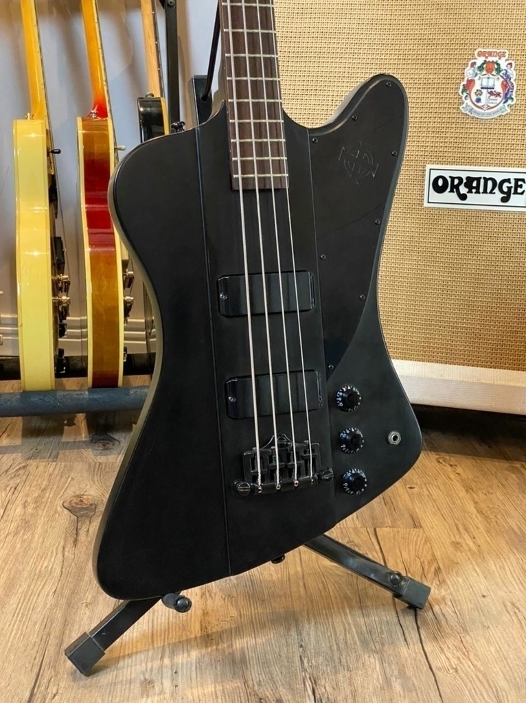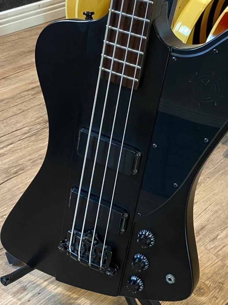 O Epiphone Thunderbird tem o clássico corpo e headstock reverso, criado originalmente em 1963 pela Gibson, a ideia foi do designer e visionário Ray Dietrich, que escolheu a fábrica Kalamazoo para lançar a linha e ajudar a solidificar a fábrica entre o ranking eminente de fabricantes de instrumentos musicais. Rapidamente, o Thunderbird foi bem recebido por baixistas dos Estados Unidos, Inglaterra, Europa e hoje, ainda é um dos mais famosos baixos no mundo todo. Esse exemplar fabricado pela Epiphone em 2009, tem corpo em Mogno e braço em Hard Maple, proporcionando timbre e sustain incríveis, já os captadores humbucker provaram ser muito versáteis para os baixistas, seja em estúdio ou no palco. O visual é um caso a parte, meio tradicional e meio moderno, elegante e imponente, está em ótimo estado de conservação, poucos detalhes estéticos, 100% original, tocabilidade sensacional por conta do braço com shape ‘Slim Taper’, é um excelente instrumento e bem diferente do padrão, revisado e regulado, pronto pra encarar qualquer som!