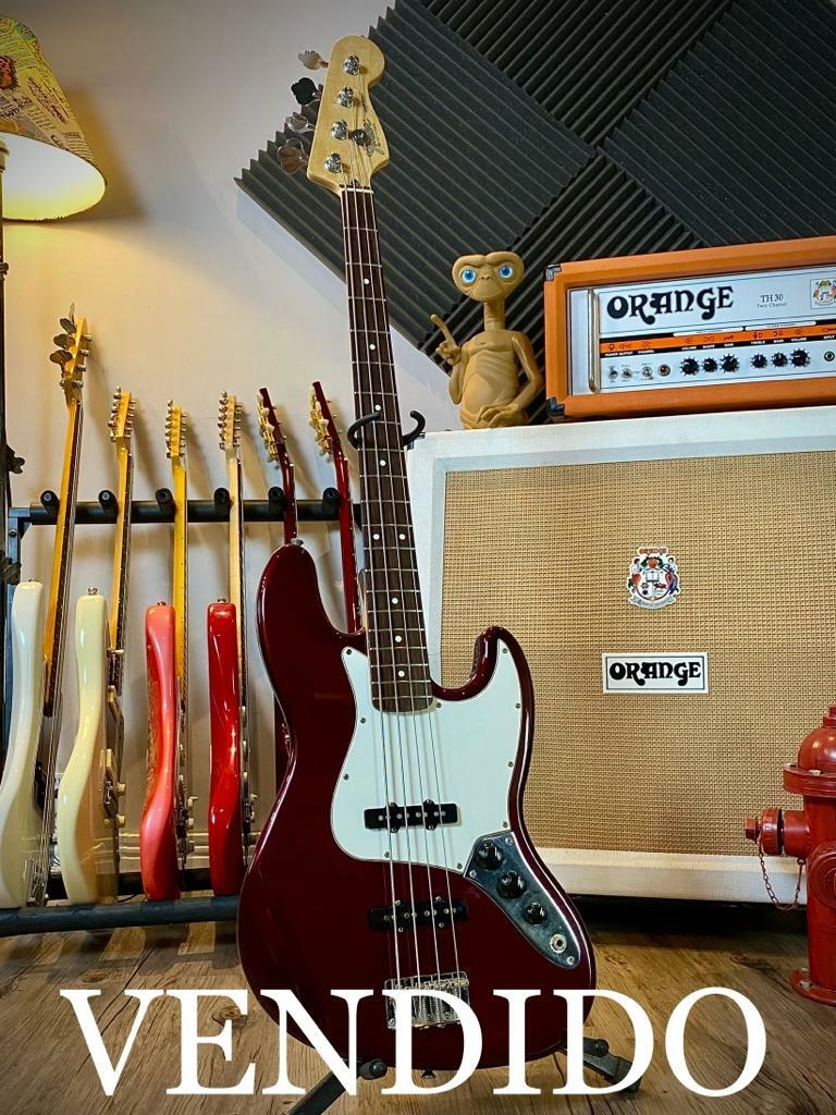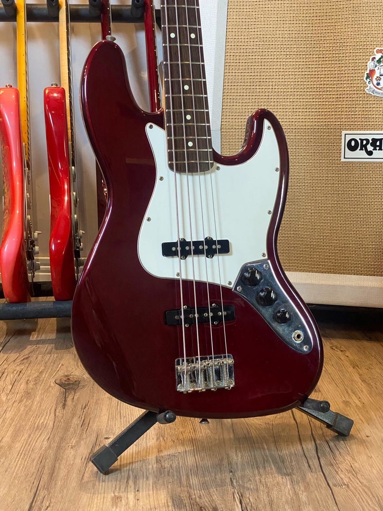 O Fender Jazz Bass foi o segundo modelo de contrabaixos elétricos criado por Leo Fender em 1960, ele tem um som mais articulado e definido do que o seu antecessor, o Fender Precision Bass, a diferença está basicamente no seu timbre mais brilhante e rico em médios, uma tocabilidade mais macia por ter o braço mais fino que o precision e também sua gama de timbres por ter 2 captadores com polos duplos, considerado por muitos como o baixo mais versátil de todos, pois se encaixa com perfeição em gravações de todos os gêneros, do punk ao jazz, do gospel ao samba. Esse exemplar fabricado no México em 2001 na cor Midnight Wine, tem o corpo em Alder, braço em Maple levemente figurado com escala em Rosewood, marcação Dot, captação original Fender Jazz Bass, controles de 2 Volumes e 1 Tone, um excelente instrumento, em ótimo estado e com uma sonoridade e tocabilidade incríveis, uma ótima opção de Fender com custo bem acessível, acompanha Gig Bag Original Fender.