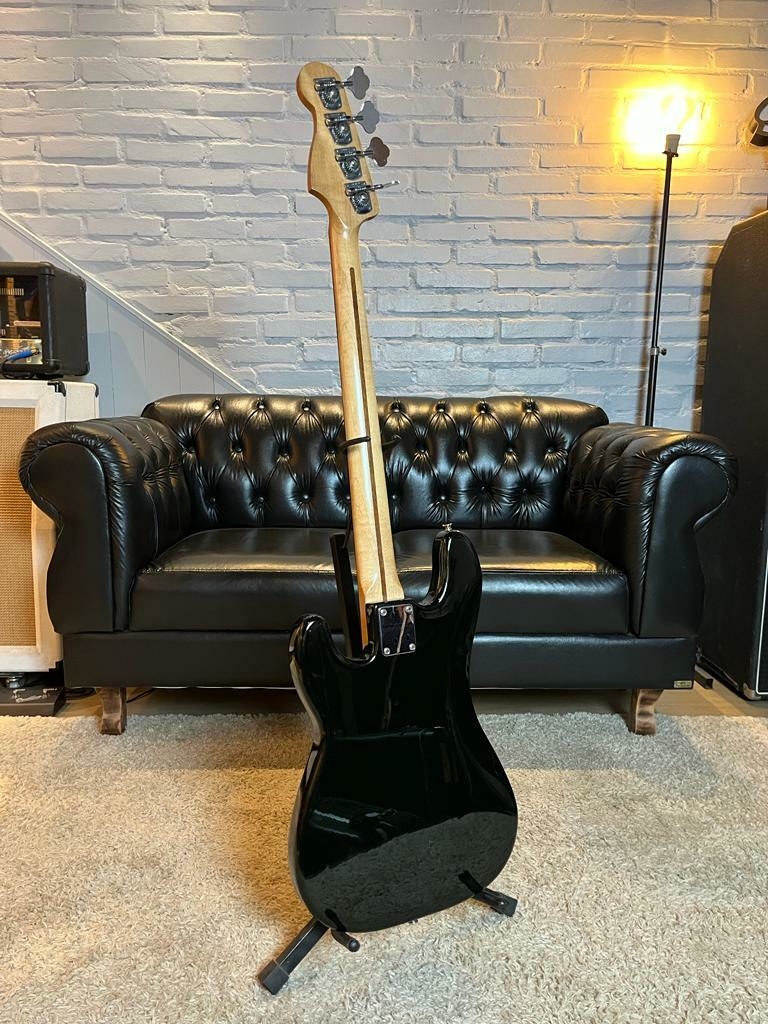 Esse é um dos Fender Precision mais legais do mercado e com custo baixo, fabricado no México em 1994, esse modelo lembra o reedição de 59 na cor Black e escudo Gold, é um clássico, sonoridade encorpada e tocabilidade super confortável, com a ação das cordas baixas. Instrumento pra quem procura um baixo pra todas as ocasiões, do gospel ao heavy metal, o Fender Precision Bass é sempre a pedida mais rápida e mais prática, e nunca decepciona. Esse instrumento está revisado, regulado e em 100% do funcionamento, tem poucas marcas estéticas devido ao uso, um belo instrumento pra colocar no seu set, é plugar e tocar!