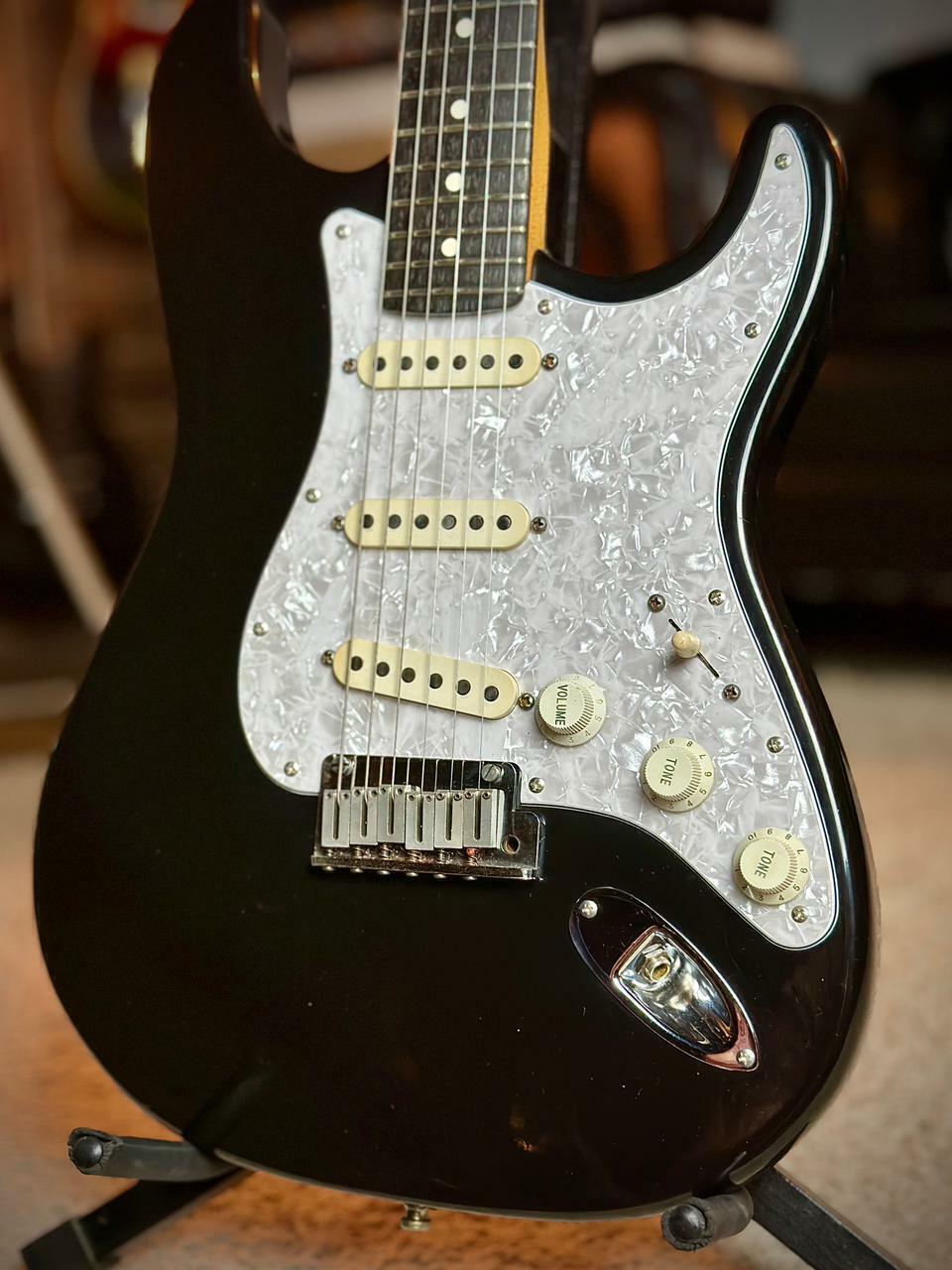Quando falamos de uma guitarra Fender já é esperado todo glamour e qualidade que esses instrumentos carregam, no entanto as famosas e tão desejadas Fender americanas sempre surpreendem desde os modelos de entrada até as Custom Shop. Esse exemplar fabricado em 1995 Made in U.S.A. fabricado em 1995, é uma edição de comemoração dos 50 anos da Fender com o selo 50TH na parte traseira do headstock, ela também tem o sistema Fender TBX Tone Control (Treble Bass Expander) que permite explorar novos timbres de tone na guitarra, tratando-se de um Pot de Tone que expande o graves e também os agudos, esse sistema é utilizado nas guitarras Fender Eric Clapton Signature e também foi utilizado nas Fender Plus no final dos anos 80. É uma guitarra sensacional, com um visual clássico na cor Black com o escudo Madrepérola (acompanha um Branco tb), braço em Maple perfil C e escala em Rosewood, tem uma tocabilidade ótima e extremamente macia, o estado da guitarra é muito bom, poucas marcas e riscos superficiais de uso, sem danos ou reparos. Instrumento todo original, com alavanca, tags e hard case Molded original Fender. Uma ótima guitarra e com muito som!