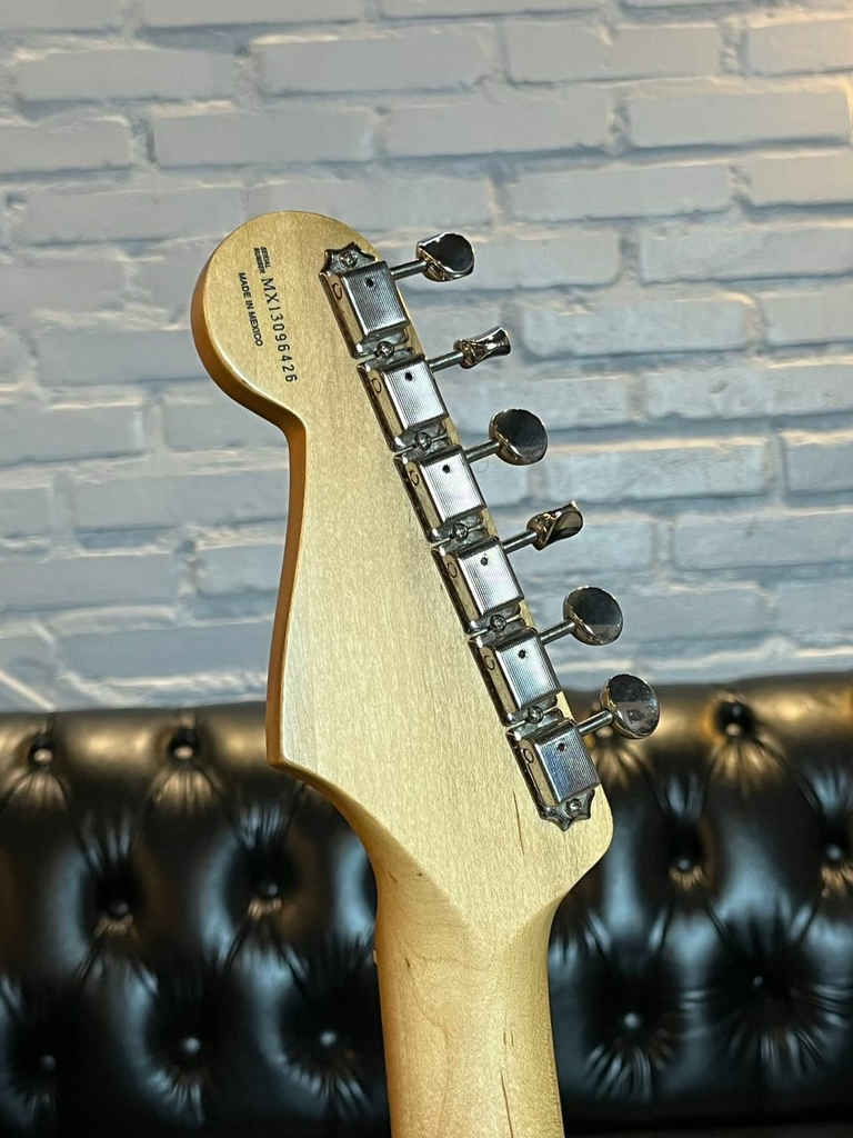 Extravagante e Linda, essa é uma das guitarras mais bonitas e marcantes de todos os tempos, a Fender Buddy Guy Polka Dot. Buddy Guy, nascido em 30 de julho de 1936 em Lettsworth, Louisiana, é um guitarrista e cantor norte-americano de Blues e Rock. Conhecido por servir de inspiração para Eric Clapton, Jimi Hendrix, Jimmy Page, Keith Richards, Steve Ray Vaughan, Jeff Beck, Gary Clark Jr, John Mayer e outras lendas, Guy é considerado um importante expoente do chamado Chicago Blues, tornado famoso por Muddy Waters e Howlin’ Wolf. Foi considerado o 23º melhor guitarrista de todos os tempos pela revista norte-americana Rolling Stone. Esse exemplar Artist Series foi fabricado no México em 2013. carrega todas as características da famosa Strato de Buddy Guy, o braço com shape Soft V com acabamento satin e a pintura do corpo com acabamento diferenciado preto com bolinhas brancas (Polka Dot), visual característico e marcante do guitarrista. A guitarra encontra-se em muito bom estado de conservação, já um pouco amarelada do tempo, poucas marcas de uso, 100% original, regulada e revisada, acompanha tags, alavanca e bag fender original.