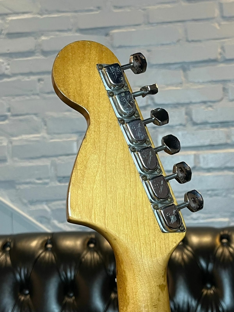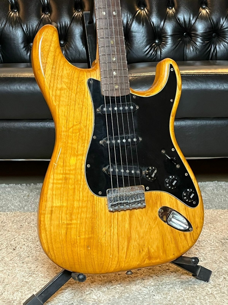 Vintage original de 1979, as guitarras Fender da década de 70 tem um visual marcante e são cada vez mais procuradas no mercado, pois são belas opções Vintage porém com um custo bem mais baixo se comparado as dos anos 60 e 50, além também de serem um ótimo investimento. Esse exemplar fabricado em 1979 é uma ótima opção pra quem procura uma Strato vintage e com muito som, com o visual incrível do Big Headstock, e diferente do que muitos pensam das Stratos com corpo em Ash, essa guitarra é bem leve comparada as Stratos dessa época, com peso de 3,500 ela traz tudo oq vc precisa de uma Fender Strato incrível. A versão com ponte Hardtail por conta de ser uma ponte fixa, sem o sistema de alavanca e molas, proporciona um pouco mais de sustain comparando com as versões com tremolo. O timbre dessa guitarra é bastante encorpado e bem cristalino, a pegada do braço C mais gordo é bem legal, está em ótimo estado, toda original com excessão dos trastes que foram substituídos por inox da mesma medida dos originais, a tocabilidade é absurda e macia, corpo em Ash Natural com visual lindíssimo, tensor funcionando, toda regulada e revisada, com case original fender original da época, uma bela Strato clássica pra colocar no seu Set!