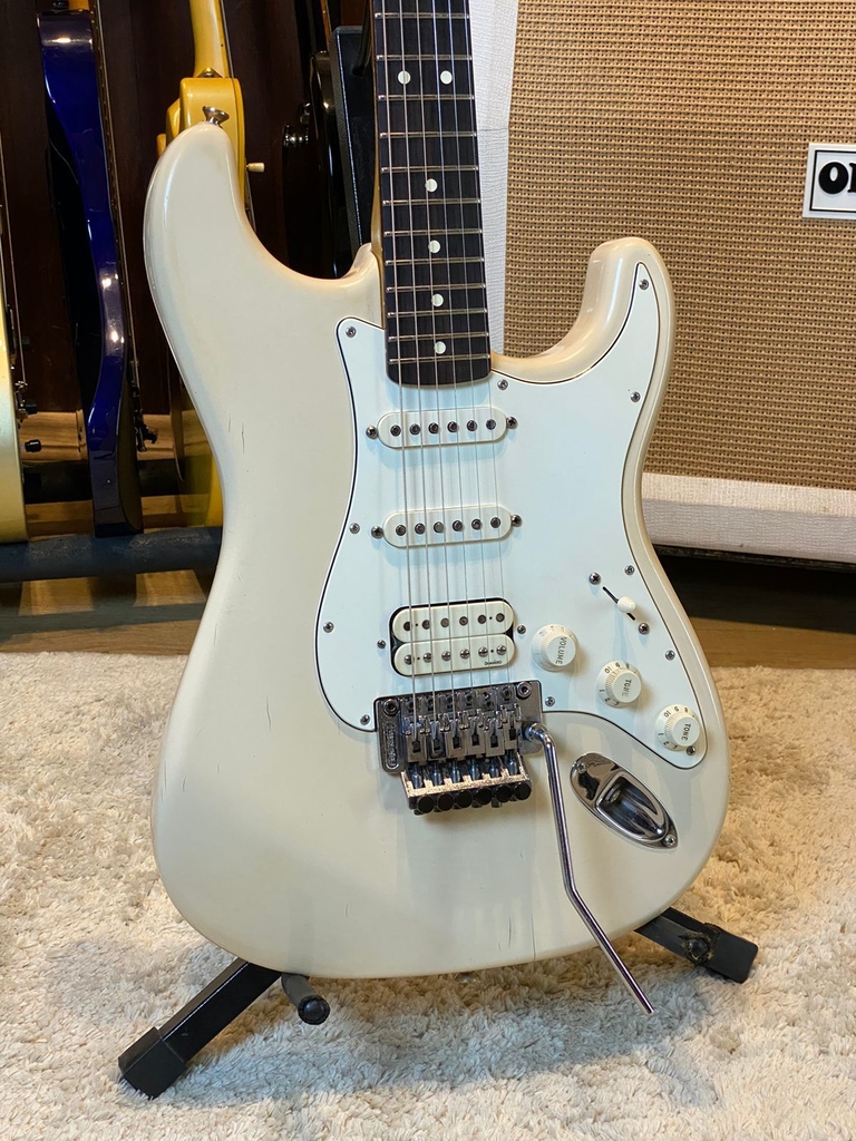 Essa é uma daquelas guitarras emblemáticas que juntam o clássico do moderno, uma strato com humbucker e ponte Floyd Rose. Richie Sambora foi guitarrista e um dos fundadores do Bon Jovi, ele ao longo dos anos se tornou um dos mais renomados guitarristas de todos os tempos e compositor de vários Hits, além de ser conhecido pela suas famosas Stratos turbinadas. Esse exemplar fabricado no México em 1996 é um achado, completamente original, a cor também é difícil de se encontrar nos modelos mexicanos, Olympic White, ela vem com a ponte Floyd Rose 2, captação HSS sendo 2 Fender Singlecoil no braço e meio, e 1 Humbucker Dimarzio PAF Pro na ponte, dando uma sonoridade incrível pra essa guitarra, além de super versátil. Vale lembrar que as Fender Richie Sambora não tem a cavidade tradicional da ponte Floyd Rose, ou seja, é uma ponte com ação de alavanca somente pra frente, é muito mais estável e segura muito mais a afinação. A guitarra está em bom estado, 100% original, todas as peças, elétrica e carimbos originais, apresenta algumas marcas de uso no corpo e braço, porém a tocabilidade é perfeita e com um timbre animal. Ela teve um adesivo colado na parte traseira do corpo, que após ser retirado deixou a pintura marcada, é somente um detalhe estético, essa marca não foi reparada para manter a originalidade da pintura do instrumento. Acompanha Tags, Alavanca e Soft Bag, é realmente uma bela guitarra!