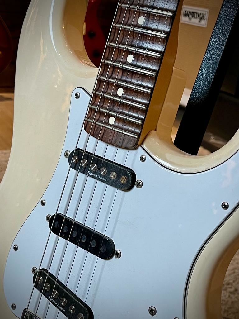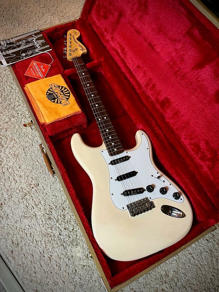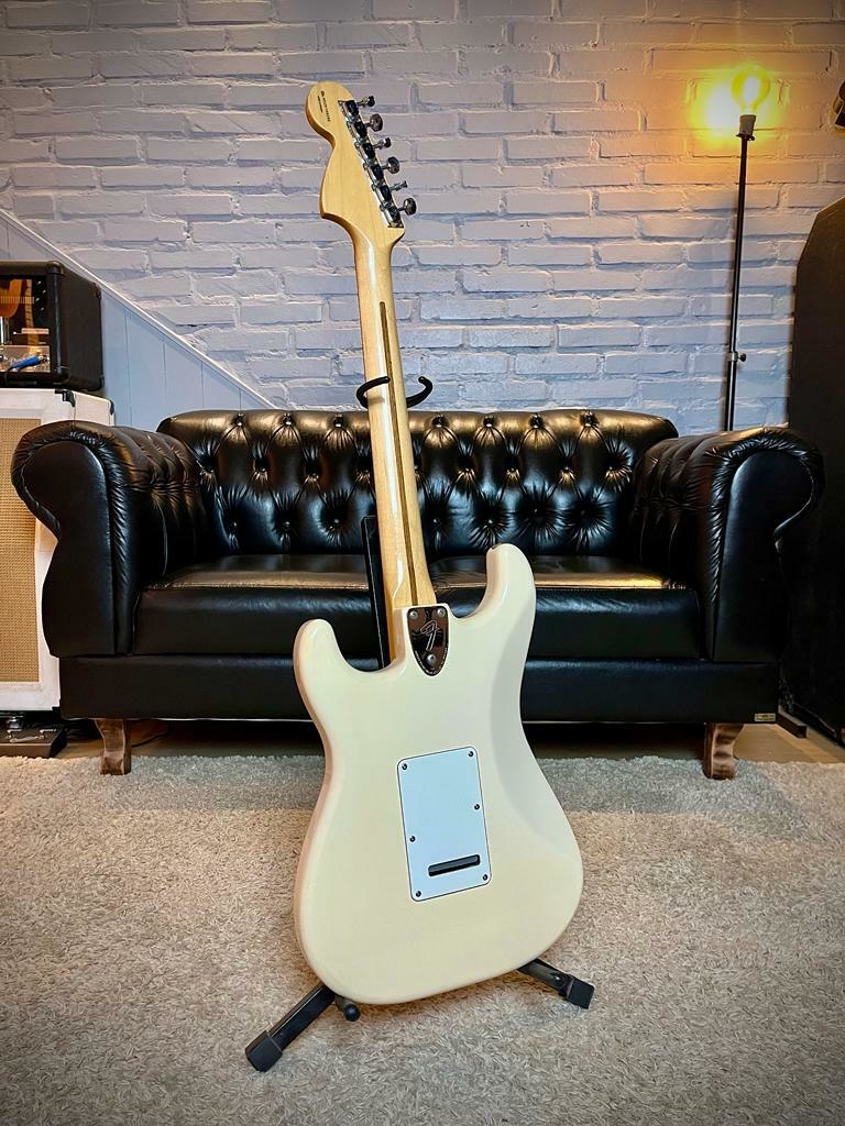 Essa é uma das Stratos mais emblemáticas da história do Rock. Richard 'Ritchie' Hugh Blackmore (Ritchie Blackmore) é um guitarrista e compositor inglês, conhecido por tocar nas bandas Deep Purple e Rainbow. Atualmente é o guitarrista da banda de folk rock Blackmore's Night. Entre suas consagradas guitarras está a icônica Fender Strato 1972. Esse exemplar é uma reedição de 72’ Signature, com todas as características e especificações da strato clássica do Blackmore, fabricada no México essa guitarra vem ficando cada vez mais difícil de encontrar no mercado, além de ser uma Strato extraordinária em questão a tocabilidade, sonoridade e construção. Essa guitarra foi fabricada no México no ano de 2008 e tem como características mais marcantes o braço Maple com shape Thin ‘’C’’ e escala em Rosewood gradualmente escalopado, a captação com somente 2 Singlecoils Seymour Duncan Quarter Pound SSL-4 no Braço e Ponte, que tem mais de duas vezes o sinal de um Single comum, junto da chave 3 posições trazendo as combinações (Braço / Braço+Ponte / Ponte), já na posição do meio o chamado ‘Dummy Coil’ que é somente uma capa sem o captador. Esse instrumento encontra-se em muito bom estado de conservação, todo original, sem danos ou reparos, tem algumas marcas de uso, está totalmente regulada e revisada, também acompanha tags e Hard Case.