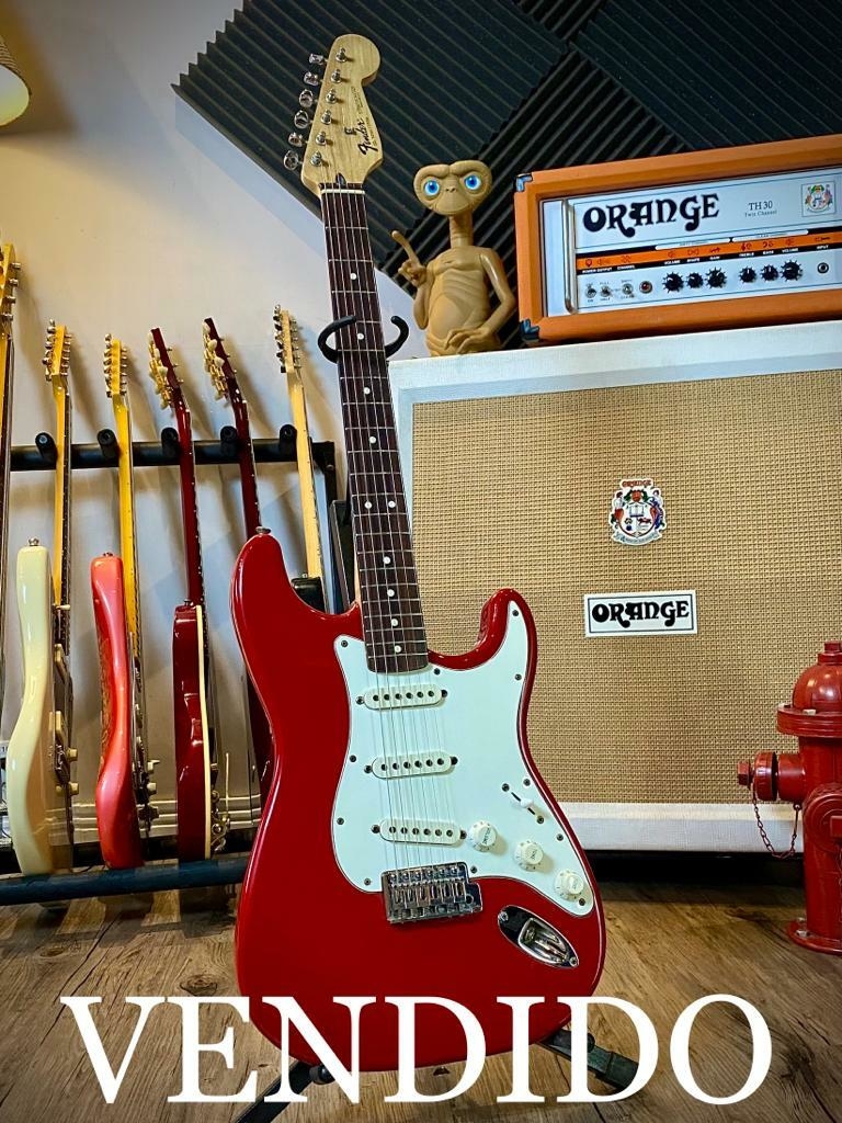 Essa é uma daquelas guitarras que surpreendem, os instrumentos fabricados pela Fender no México tiveram duas versões, a versão “Standard” que tinha o Logotipo Padrão (Silver Logo), e a Versão “Traditional” que tinha o Logotipo Padrão (Black Label) e que era equipada com tarrachas e ponte um pouco inferiores às do modelo Standard, essa versão Traditional “Black Label” foi fabricada somente de 1993 até 1998. Esse exemplar anunciado está em ótimo estado, 100% original, ano 96, tem corpo em Poplar, braço em Maple, escala em Rosewood, marcação Dot, ferragem Cromada, escudo 3 ply, escudo traseiro 1 ply, elétrica original com 1 Volume e 2 Tone, chave de 5 posições, captação 3 singles originais Cerâmicos e o Logotipo Fender Black Label. Uma excelente guitarra, com todos os carimbos e selos originais no encaixe do braço, tem tocabilidade e uma sonoridade muito legal, e ainda tem aquele visual Mark Knopfler, acompanha tags, alavanca e Soft Bag.