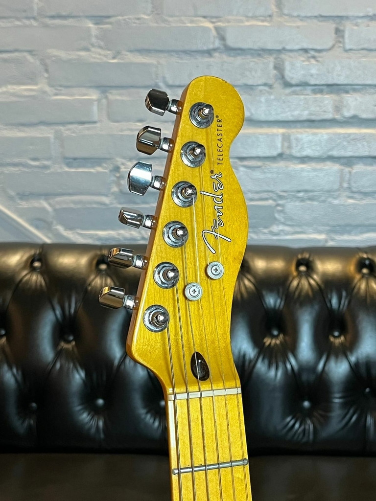 Mais um clássico do mundo das guitarras, a Telecaster é um dos modelos mais desejados e reconhecidos da Fender, esse exemplar faz parte das novas linhas da Fender fabricadas oficialmente na China, não é réplica ou cópia, é um instrumento original Fender, traz características tradicionais das Tele porém com uma variedade de timbres incríveis por conta do single na posição do meio e o humbucker na ponte, tem Chave de 5 posições e 1 Switch Split Coil pra defasar o Humbucker em Singlecoil, acabamento incrível em Polyester no corpo e braço, a cor Honey Burst deixa essa tele com um visual lindo, tem uma tocabilidade excelente, e pra melhorar, foi feito um Upgrade nas tarraxas com um kit Fender American Standard e instalado um Humbucker Seymour Duncan JB na ponte. Essa guitarra é um ótimo investimento pra quem procura um instrumento Fender com baixo custo mas com qualidade, visual e versatilidade, está em excelente estado, acompanha tags e Soft Bag.