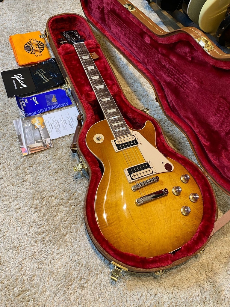 A Gibson Les Paul é um um dos modelos mais desejados pelos guitarristas em todo o mundo. A nova Classic traz todo o visual clássico das Gibson Les Paul porém com alguns requintes, é realmente uma das linhas mais legais da marca. Esse exemplar fabricado 2020, seminova, zerada, faz parte da nova linha Classic da Gibson, o acabamento clássico, nibs nos trastes, tem tarraxas Grover, captação Burstbucker 61R e 61T Zebra que proporcionam os timbres clássicos de época da Gibson com uma pegada um pouco mais intensa, o braço é perfil 60 Slim Taper (mais fino) dando uma tocabilidade super macia e confortável no braço, sistema com 4 Push/Pull nos Knobs, trazendo características clássicas dos humbuckers junto da possibilidade de splitar para apenas uma bobina por captador, dando a sonoridade de um singlecoil na Les Paul, tem inversão de fase e bypass, é extremamente versátil e com vários timbres numa guitarra só. A guitarra esta novíssima, perfeita, linda, acabamento com verniz High Gloss lindíssimo, guitarra com uma pegada espetacular e sonoridade incrível, também acompanha tags, acessórios, manual e case original Gibson marrom, é um sonho, maravilhosa e pronta pra dominar os palcos!
