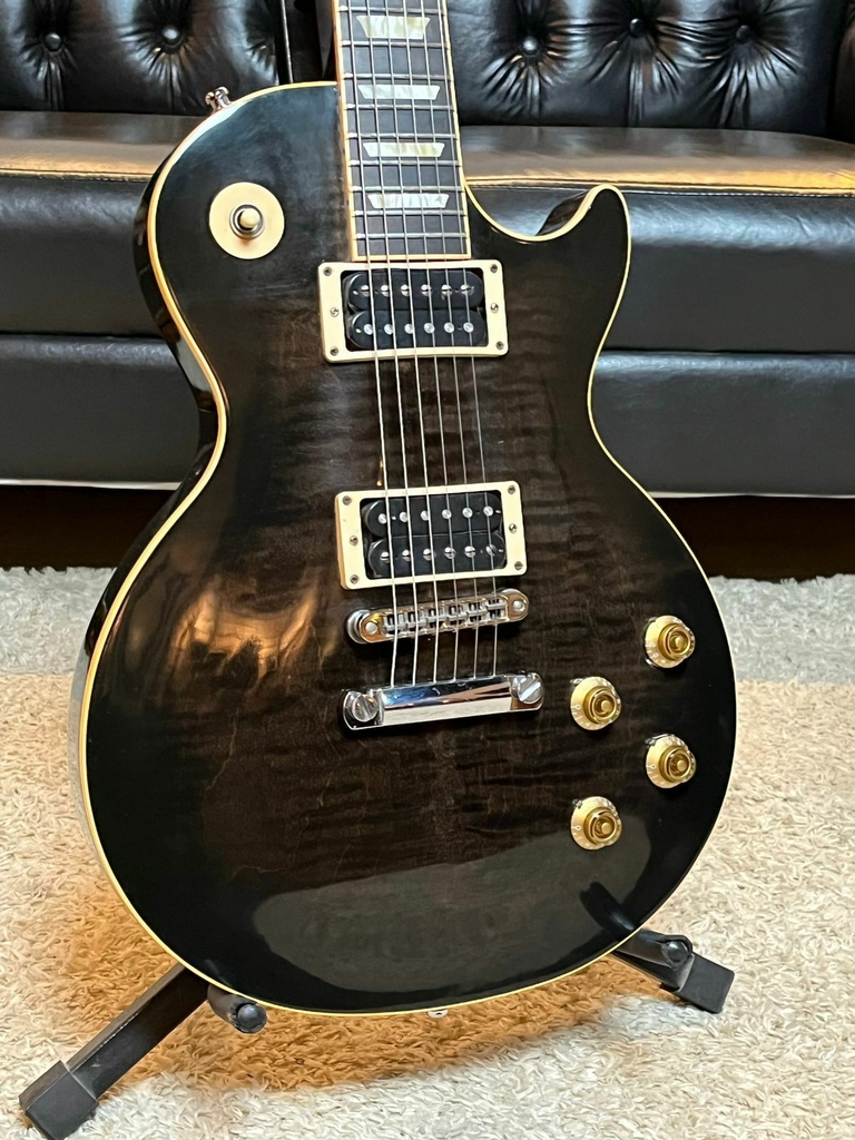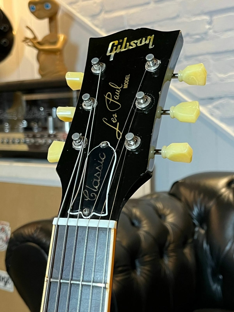 Quando pensamos em uma Les Paul incrível, com visual, pegada e sonoridade matadora, essa com certeza entra na lista com facilidade. A Gibson Les Paul Classic é uma das linhas mais legais que a Gibson já lançou, desde o seu lançamento no início da década de 90 essas guitarras colecionaram fãs por onde passaram. Dentro das especificações desse modelo estão a captação 500T na ponte e 496R no braço, o perfil do braço é o 60’s Slim Taper (mais fino), tarraxas Deluxe estilo vintage e o visual clássico das Les Paul, A versão Classic Plus tem o tampo em Flamed Maple que dá um visual incrível e de muito bom gosto pra essa guitarra, é uma ótima opção pra quem procura um instrumento de altíssimo nível, porém com o valor mais acessível do que um modelo Custom Shop Reissue 1960 na qual é baseada. Esse exemplar fabricado em 2012 na cor exclusiva Trans Ebony Burst está toda original, braço Slim Taper super confortável com escala em rosewood super escuro. Instrumento todo regulado e revisado, baita som, em muito bom estado com poucas marcas estéticas de uso, acompanha tags e case original Gibson. Essa é só plugar, tocar e arrasar!