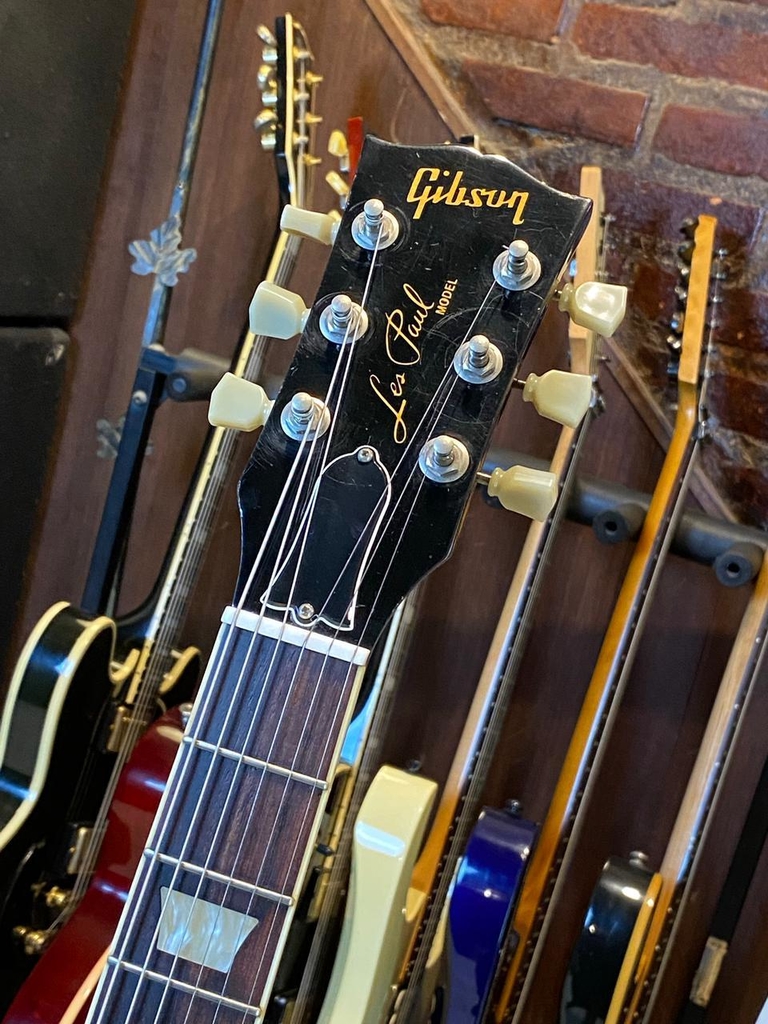 A Gibson Les Paul é um um dos modelos mais desejados pelos guitarristas em todo o mundo, principalmente o modelo Standard. A primeira impressão dessa guitarra é de ser uma Les Paul Standard, mas na verdade é uma Gibson Les Paul Studio que teve um Upgrade de altíssima qualidade para receber algumas das características clássicas do modelo Standard, nesse caso os tão desejados frisos (binding) instalados com precisão no corpo e braço, e também o escudo, molduras dos captadores e chave na cor creme, trazendo um visual extraordinário e de muito bom gosto pra essa Les Paul, além do acabamento em Nitrocelulose na cor Dark Rootbeer no tampo de Maple Figurado e o fundo em preto (Dark Back). Originalmente essa guitarra era toda na cor Preta (Ebony), o upgrade foi feito meramente por questão estética, não houve reparos ou qualquer tipo de dano no instrumento, o serviço foi feito por um luthier conhecido e de alto padrão, tanto a instalação dos Bindings na cor (Ivory) e Trastes (Dunlop 6130) quanto a pintura em Nitro, que inclusive teve o serial Number visualmente preservado ao fundo do headstock, o resultado é um instrumento incrível tanto na tocabilidade quanto no visual, que é de tirar o fôlego. Está totalmente revisada e regulada, o braço tem perfil mais gordo 50’s, todo o hardware, parte elétrica e pickups são originais, tem um baita som e uma pegada fabulosa, a guitarra possúi também as tags, manual e hard case original Gibson.