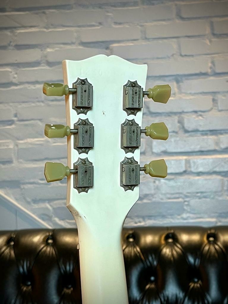 Lançada em meados de 2010, o Les Paul Tribute embalou o apelo da linha já conhecida de longos anos, a ‘Studio’, trazendo modelos com Humbuckers e com P90, se tornando um grande sucesso com os guitarristas em todos os lugares, esgotando rapidamente naquela época. Com o acabamento em nitrocelulose Satin, ela tem o visual um pouco mais simples, porém carrega toda a estrutura das linhas de topo da marca, com tocabilidade incrível e sonoridade encorpada, essa guitarra agrega todo o conjunto esperado de uma Gibson Les Paul, tocabilidade, sonoridade, pegada, timbre e o visual clássico, porém com custo mais acessível. Esse exemplar fabricado nos Estados Unidos no ano de 2010 está em bom estado, estrutura sem danos ou reparos, apresenta um visual relic pelo desgaste na pintura, com algumas marcas e riscos, na cor Alpine White com P90, essa guitarra é um verdadeiro clássico, toda revisada e regulada, acompanha tag e bag original Gibson.