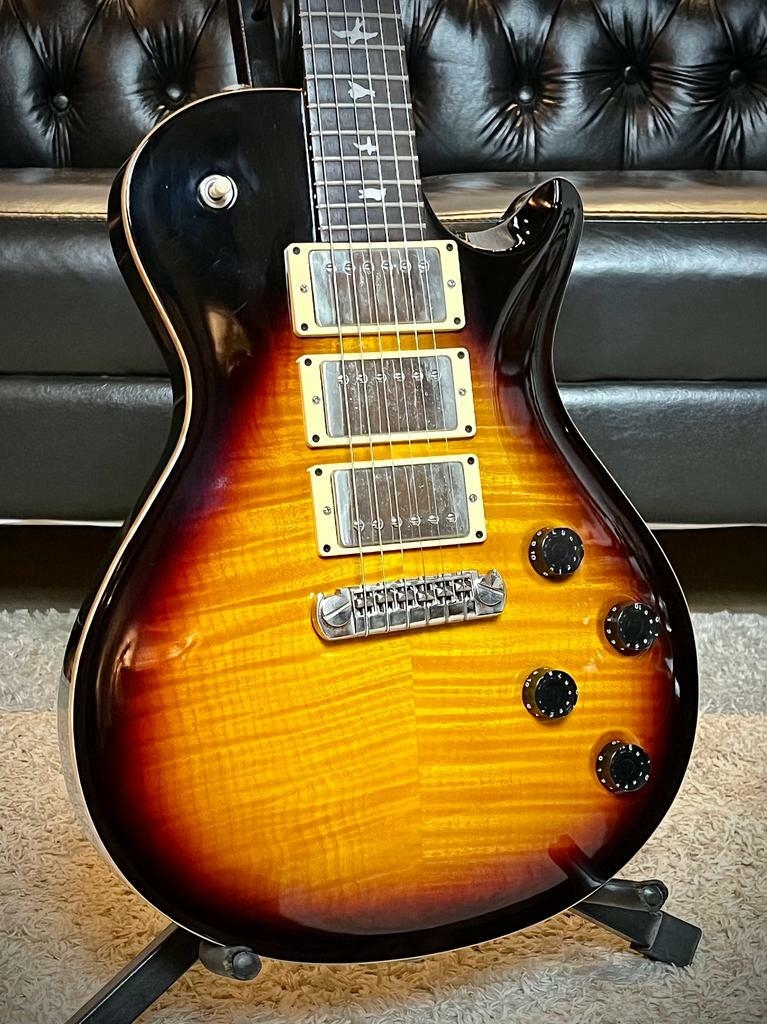 Chris Henderson é um famoso guitarrista norte americano da banda 3 Doors Down, o seu modelo signature junto a Paul Reed Smith é de tirar o fôlego. O modelo Singlecut incorpora o 3° pickup na posição do meio bem como um potenciômetro push pull para ativá-lo, essa guitarra é um espetáculo, construído com altíssimo padrão de materiais e acabamento, o corpo em mogno mais espesso junto do tampo 10 Top em Carved Flamed Maple lindíssimo dão um toque especial e requintado para essa guitarra, a sonoridade dela é absurda, uma máquina de timbres e tocabilidade impressionate. O braço em mogno wide-flat carve tem uma pegada que lembra as Les Paul mais clássicas R7, R8, R9, a escala em rosewood com os famosos birds em madrepérola, tarraxas Prs Phase 2 com trava, ponte stoptail, captação Prs 250 Treble na ponte e Prs 7 Bass no meio e braço. Pra quem procura uma guitarra de altíssimo padrão de construção, versatilidade, visual, acabamento impecável e sonoridade mais do que incrível, essa é a guitarra. Uma Paul Reed Smith U.S.A. com todo o requinte de uma das maiores fabricantes de instrumentos do mundo. Esse exemplar fabricado nos Estados Unidos em 2007 está em perfeito estado de conservação, toda original, parece nova, toda revisada e regulada, com tags, chave, certificado e case original PRS, o instrumento está perfeito, com tocabilidade macia e com a ação das cordas baixas, funcionamento 100% e pronta pra plugar e tocar. Essa é a sua chance de ter uma PRS americana top de linha.