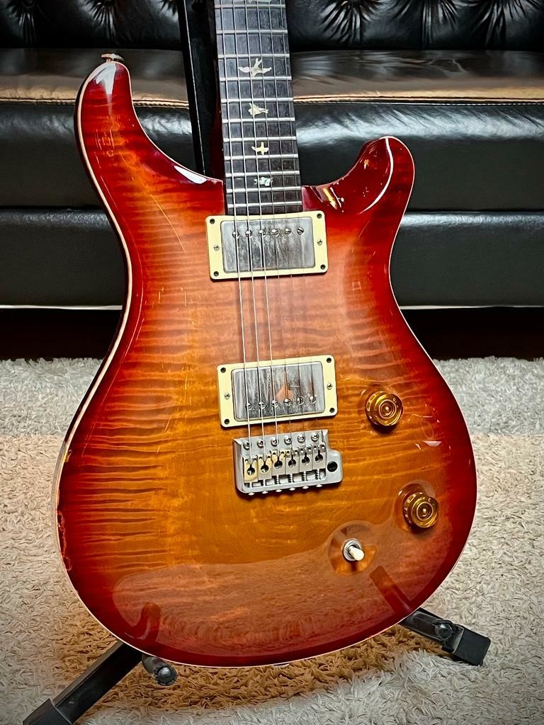 Pra quem procura uma guitarra de altíssimo padrão de construção, versatilidade, visual, acabamento e sonoridade mais do que incrível, essa é a guitarra. Uma Paul Reed Smith U.S.A. com todo o requinte de uma das maiores fabricantes de instrumentos do mundo. O modelo Custom 22 é um dos clássicos da marca americana, o formato double cutway traz conforto e tocabilidade incrível, além do visual tem uma versatilidade absurda nos timbres e combinações dos 2 Humbuckers Dragon 2, essa guitarra é animal. O acabamento impecável da marca dispensa comentários, marcação birds em abalone, tarraxas Prs, trastes jumbo, braço com perfil Wide Fat semelhante aos braços das Les Paul 50, o tampo 10 Top em flamed maple traz um charme diferenciado pra esse instrumento, é uma guitarra linda e de muito bom gosto, pra quem procura um instrumento top de linha e com muita identidade e versatilidade, essa guitarra vai em todos os estilos com maestria. Esse exemplar fabricado nos Estados Unidos em 2001 está em muito bom estado de conservação, toda original, toda revisada e regulada, com case original PRS, o instrumento está com tocabilidade macia e com a ação das cordas baixas, funcionamento perfeito e pronta pra plugar e tocar. Essa é a sua chance de ter uma PRS americana top de linha.