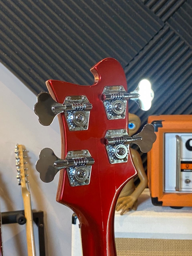 Sonho de consumo de muitos baixistas, um verdadeiro clássico e com uma cor incrível, um dos grandes nomes que utilizaram um Ric dessa cor foi Cliff Burton (Metallica), esse baixo tem o corpo e braço em Maple (neck thru body), escala em Rosewood com marcação "Triangle Inlays", braço com Tensor Duplo, tarrachas Schaller Deluxe, captação original Ric, bridge pickup cover incluso, Jack com saída stereo sendo 1 Jack Standard e 1 Jack Rick-O-Sound, chave 3 posições, controle 2 volume e 2 tone, instrumento em excelente estado, praticamente novo, acompanha Hardcase original Ric e todas as tags.