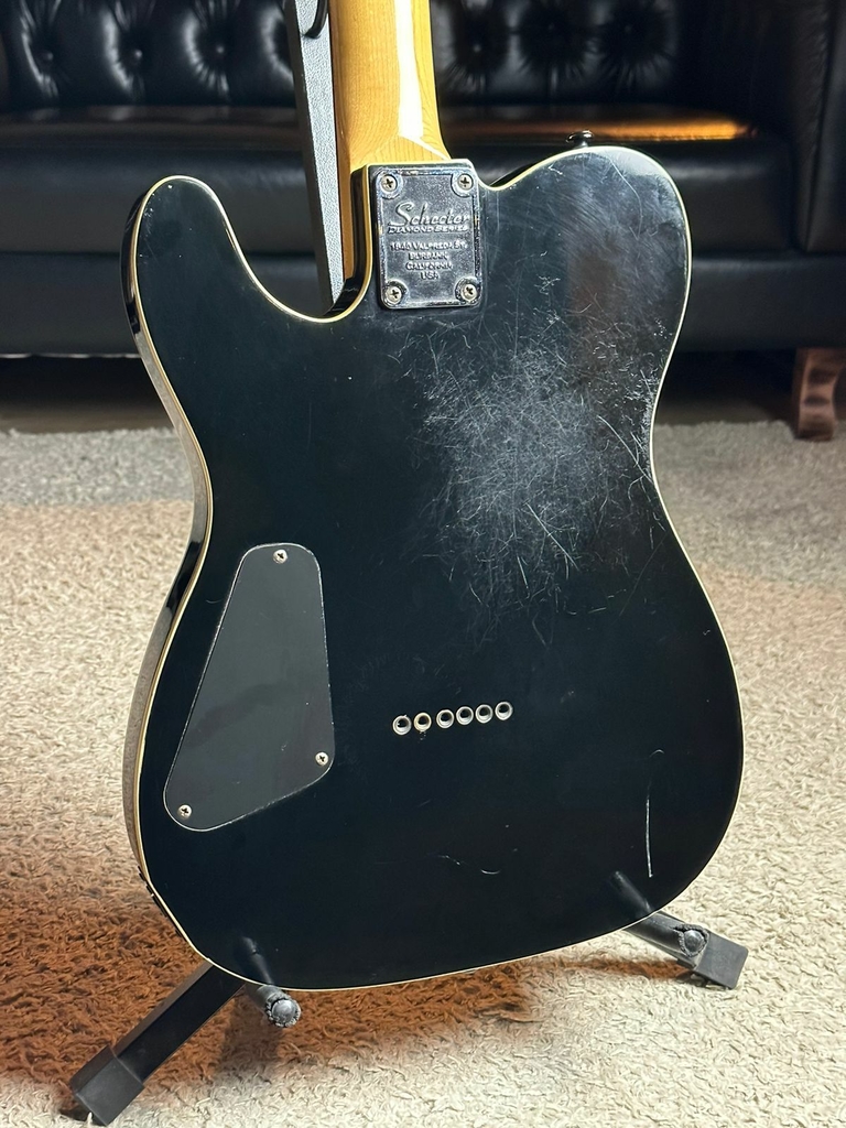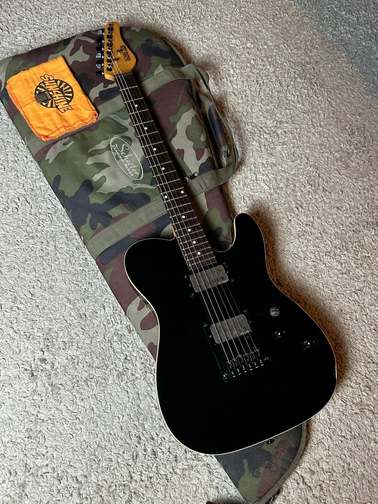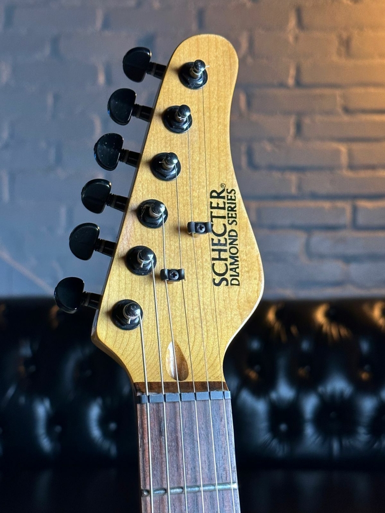 A guitarra Schecter PT é basicamente um remake de uma das guitarras mais populares da Schecter do início dos anos 80. Originalmente uma guitarra personalizada para o guitarrista Pete Townshend da banda The Who, a PT agora está disponível para mais músicos como parte da Schecter Diamond Series. O modelo PT tem um corpo de Alder com binding (friso) lateral na cor creme na frente e traseira do corpo, braço em Rock Maple com escala de Rosewood e marcações Dot na cor branca, 2 captadores Schecter Diamond SuperRock 2 em Alnico V com polos grandes, elétrica com 1 volume e 1 tone com Push/Pull defasando os humbuckers para singlecoil. Esse exemplar fabricado em 2008 está em bom estado de conservação, toda original, sem danos ou reparos, tem algumas marcas estéticas de uso, porém toda revisada e regulada, tem uma pegada de braço impressionante e muito som! A Schecter PT é uma guitarra super versátil e com ótimo custo benefício. Acompanha Soft Bag.