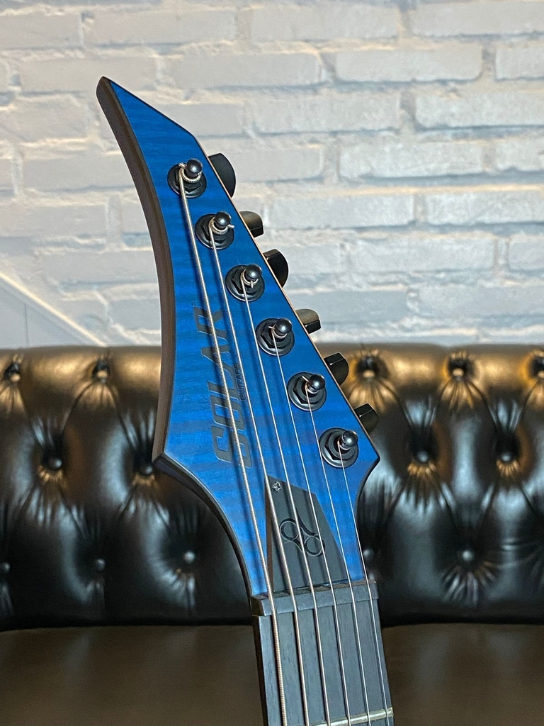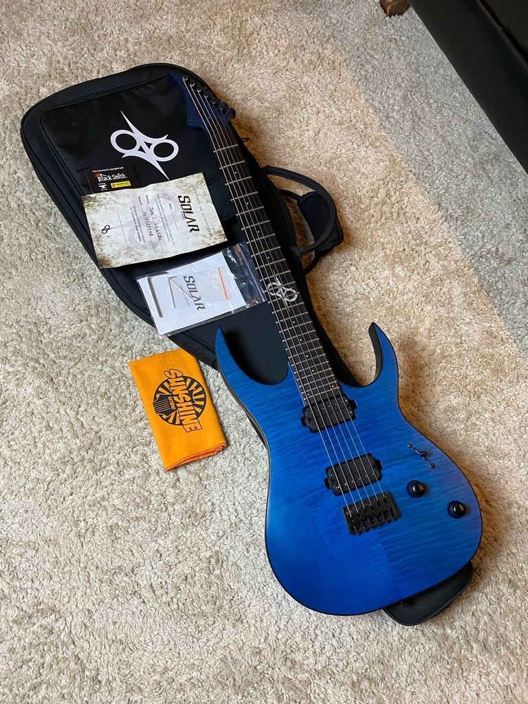 A Solar Guitars é uma marca idealizada pelo mundialmente famoso músico e youtuber Ola Englund. As guitarras Solar são simplesmente maravilhosas, super bem construídas, com hardware de primeira linha e um preço de instrumento usado. A marca vem simplesmente conquistando o mercado pelo seu custo benefício, beleza e tocabilidade superior, passando por um rigoroso processo de fabricação, em que cada madeira e hardware é escolhido e testado individualmente. Comprando uma Solar, você tem a garantia de receber um instrumento de primeira linha que passou pelos mais rigorosos processos de construção e vistoria. A Solar A2.6FBL é produzida para obter o melhor de performance no palco e no studio, tocabilidade perfeita e timbre incrível, o formato de corpo super confortável, tarraxas solar 18:1, ponte fixa e os captadores Seymour Duncan signature da Solar Guitars proporcionam ao músico uma guitarra com custo benefício inacreditável. Esse exemplar fabricado em 2019 está absolutamente nova, guitarra sem uso e sem marcas, toda original, regulada e revisada, com todas as tags, certificado, chaves e Bag Luxo original Solar, é uma guitarra incrível e pronta pra tocar!