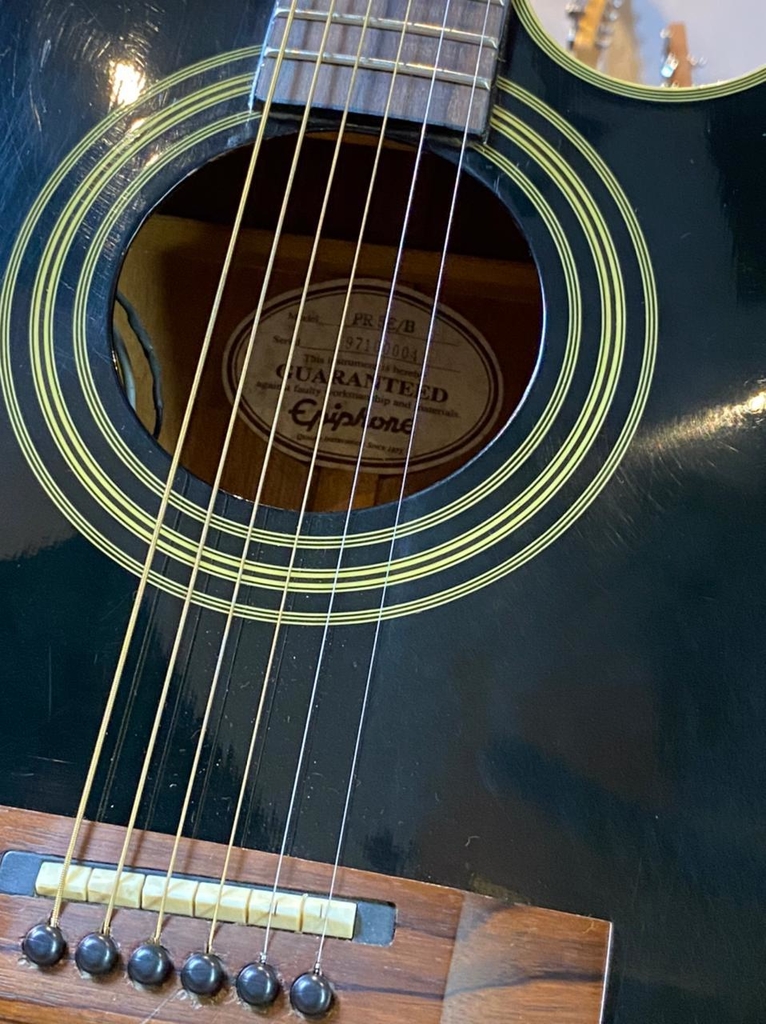 O violão Epiphone PR5E tem o visual, o som e os recursos eletrônicos para as necessidades de todas as suas gigs. Com tampo em Spruce selecionado, corpo em mogno, escala em rosewood, lindos inlays tipo diamante e o excelente sistema Shadow de captação. Esse exemplar fabricado na Korea na década de 90 tem o design e construção levemente diferente dos atuais Epiphone PR-5 fabricados na China, principalmente o Headstock, que tem o mesmo design clássico das guitarras Epiphone. Entrega um som limpo, definido e alto quando desplugado, e um som brilhante e de fácil equalização quando plugado. Em excelente estado de conservação e totalmente regulado, vai te fazer querer passar mais e mais horas tocando e curtindo esse violão.