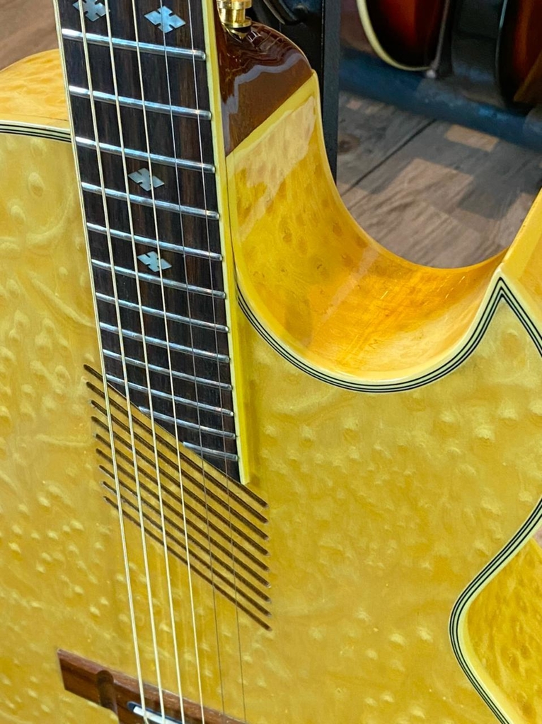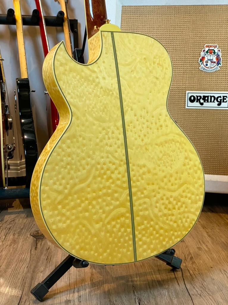 A Washburn é uma marca fundada em Chicago no final dos anos 1880, reconhecida como uma das maiores e mais antigas marcas de instrumentos de cordas dos Estado Unidos, já teve também sua fabricação no Japão na década de 70. O setor Custom Shop da Washburn foi fundado em 1991 nos EUA, produzindo apenas instrumentos de altíssimo nível, edições limitadas e exclusivas. O modelo EA-36 Festival Series Marquee foi lançado em 1992 e teve sua produção até 1997, a partir do ano de 96 o nome Marquee foi descontinuado, permacendo somente EA-36 Festival Series com a nova captação Equis Gold. Esse modelo foi utilizado por alguns grandes nomes da música como Robert Plant, John Jorgenson e David Brooks. Ficou conhecido como modelo Signature de Robert Plant (Led Zeppelin), utilizando e divulgando o modelo por mais de 6 anos nos catálogos da Washburn. Esse exemplar fabricado em 1996 encontra-se em excelente estado, alguns detalhes estéticos de uso, está 100% original, regulado e com tocabilidade incrível, o acabamento e visual é de tirar o fôlego e a sonoridade diferenciada pela (boca) não convencional de 9 linhas, proporcionando baixíssimo Feedback quando plugado ao vivo com grandes volumes. É uma peça incrível, bem rara e também colecionável, um instrumento ímpar em todos os sentidos, acompanha case, fotos de catálogo do Robert Plant.